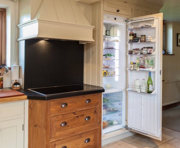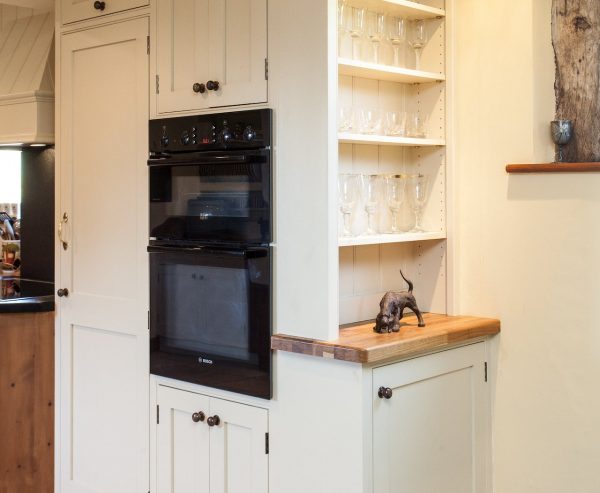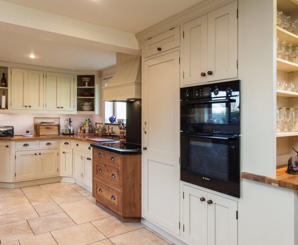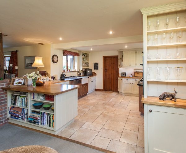 This kitchen was designed for a very old and quaint converted barn. The kitchen needed to span two areas situated partly in the original property, running to the newly built extension. Our client wanted an easy to maintain, long-lasting and spacious kitchen which we delivered using traditional building techniques and some clever design.